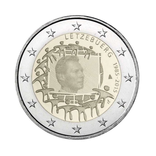 2015 m. liepą 19 euro zonos šalių kartu išleido proginę euro monetą, skirtą ES vėliavos 30-mečiui paminėti. Monetose ES vėliava pavaizduota kaip simbolis, vienijantis žmones ir kultūras su bendromis geresnės bendros ateities vizijomis ir idealais. Dvylika žvaigždžių, kurios virsta žmonių figūromis, apkabina naujos Europos gimimą. Viršuje dešinėje, puslankiu, yra monetą leidžianti šalis, kurių metai yra "1985–2015 m.". Apačioje dešinėje yra menininko inicialai (Georgios Stamatopoulos). Monetos išoriniame žiede yra 12 Europos Sąjungos žvaigždžių. Šalies pavadinimas monetoje atspindi, kuri šalis sią monetą išleido.