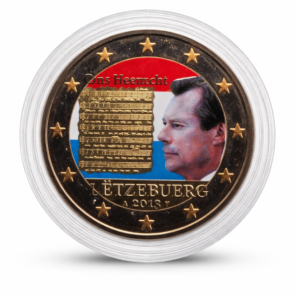 Dešinėje monetos pusėje, vidinėje dalyje, pavaizduotas Jo Prakilnybė, Didysis Hercogas Henris, žiūrintis į kairę pusę, o kairėje monetos pusėje, vidinėje dalyje – muzikos natos ir valstybės himno tekstas. Vidinės monetos dalies viršuje iškaltas tekstas „Ons Heemecht“, o vidinės dalies apačioje – monetą išleidusios šalies pavadinimas „LËTZEBUERG“ ir metai „2013“, šalia kurių iškaltas kalyklos ženklas ir kalyklos meistro inicialai. Monetos išorinėje dalyje (žiede) išdėstytos dvylika Europos Sąjungos žvaigždžių.