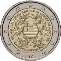 200-osios Graikijos revoliucijos metinėsMonetos centre pavaizduota lauro šakelėmis apsupta Graikijos..