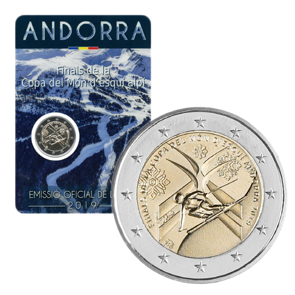 2019 m. slidinėjimo pasaulio taurės varžybų finalas vyko Andoros Kunigaikštystėje 2019 m. kovo 11–17 d. Taigi, Andoros Kunigaikštystė surengė vienas svarbiausių kalnų slidinėjimo varžybų pasaulyje. Andoros Kunigaikštystei tai prestižiškiausias kada nors šalyje vykęs žiemos sporto renginys ir esminis šalies perspektyvos tapti sporto šalimi įvykis. Monetoje pavaizduotas nuo kalno čiuožiantis slidininkas. Fone pavaizduotos keturios lenktos linijos, paimtos iš oficialaus šių slidinėjimo pasaulio taurės varžybų finalo logotipo, simbolizuoja šlaitus, kur vyko varžybos. Monetoje taip pat pavaizduotos kelios snaigės ir iškaltas įrašas „FINALS DE LA COPA DEL MÓN D’ESQUÍ ANDORRA 2019“ (Andora. 2019 m. slidinėjimo pasaulio taurės varžybų finalas). Išorinėje dalyje (žiede) pavaizduota dvylika Europos Sąjungos vėliavos žvaigždžių.